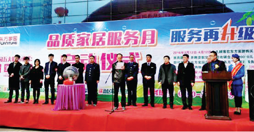 在“3·15”消費(fèi)者權(quán)益日,忻州東方家園建材家具中心推出了“品質(zhì)家居服務(wù)月”活動。期間,東方家園與山西愛潔達(dá)貿(mào)易公司、忻州市惠民物業(yè)管理公司強(qiáng)強(qiáng)合作,為顧客提供免費(fèi)上門服務(wù)。圖為“品質(zhì)家居服務(wù)月”啟動儀式。(李志強(qiáng) 攝)