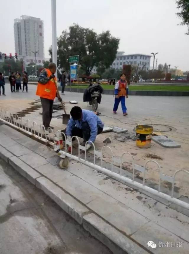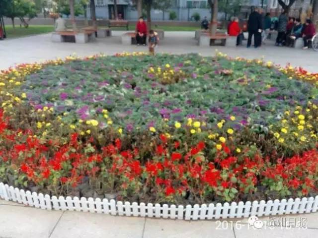 (四)為了突出創(chuàng)衛(wèi)這個詞語,我選用了健康教育宣傳欄和正在進行對這個城市面貌修飾的工人,還有我們學校附近的街心花園新修的一個花圃。(崔風琴 攝)