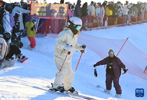 2月25日,滑雪愛(ài)好者在新疆阿勒泰將軍山國(guó)際滑雪度假區(qū)滑雪。(新華社記者 王菲 攝)