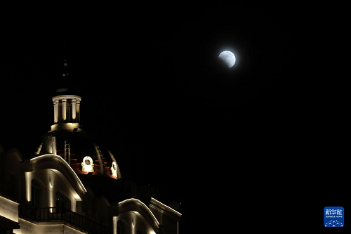 3月3日在黑龍江省撫遠(yuǎn)市拍攝的月全食初虧階段。(新華社發(fā) 李擁軍 攝)