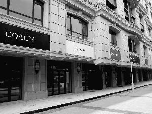 昨日,北京晨報(bào)記者來到位于建國(guó)門橋附近的中海楓丹公館,看到整個(gè)樓盤有五棟樓,呈凹字形。建筑物四周設(shè)有30多個(gè)大小不一的底商,每個(gè)底商頂部都掛著一個(gè)看似國(guó)際大牌的招牌,既有奢侈品,也有快餐業(yè),顏色鮮艷,十分奪目。就在這些大牌的招牌旁邊,張貼著大幅廣告“黃金旺鋪火爆招商中”。