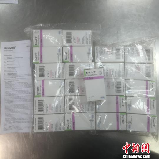 經(jīng)查驗發(fā)現(xiàn),背包內(nèi)放置著23盒嶄新的藥物,共計1.4千克。這些藥物分四排用透明塑料紙纏繞,每個盒子內(nèi)裝有一個塑料藥瓶,內(nèi)有50片藥丸。藥盒上及內(nèi)部的說明書均為外文印刷。在最外面包裝上,貼著用中文繁體字印刷的“毒藥”和“處方藥物”字樣。關(guān)員立刻查閱了藥品說明,發(fā)現(xiàn)這些藥物居然是被稱為“最強(qiáng)安眠藥”的氯硝西泮。