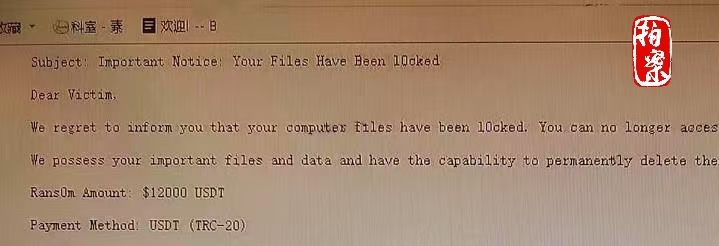 這是提示文件已經(jīng)被鎖定的勒索信息。(杭州市公安局上城分局供圖)