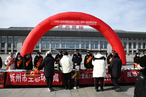《中華人民共和國(guó)反恐怖主義法》頒布實(shí)施十周年之際,為深入貫徹總體國(guó)家安全觀,引導(dǎo)廣大人民群眾增強(qiáng)反恐意識(shí)、強(qiáng)化反恐責(zé)任、踐行反恐義務(wù),筑牢全社會(huì)反恐安全防線,12月26日上午,忻州市反恐怖領(lǐng)導(dǎo)小組在忻州西站東廣場(chǎng)開(kāi)展“全民反恐 共創(chuàng)平安”主題宣傳活動(dòng)。