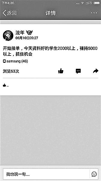 一名借貸行業(yè)人士則告訴記者,在網(wǎng)絡(luò)平臺進(jìn)行此類借貸的一般是私人貸款公司,借貸者一般是有負(fù)債經(jīng)歷的女生。