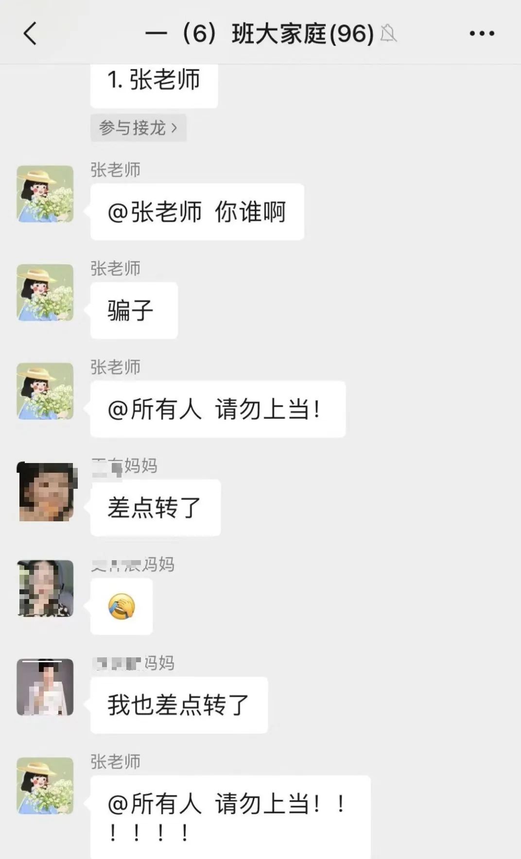 騙子通過盜取或克隆老師、家長(zhǎng)的微信、QQ等賬號(hào),混進(jìn)家長(zhǎng)群,利用家長(zhǎng)對(duì)老師的信任,假借老師之名,以需要繳納服裝、教材、資料等費(fèi)用為由實(shí)施詐騙。