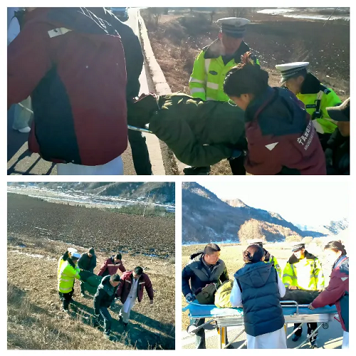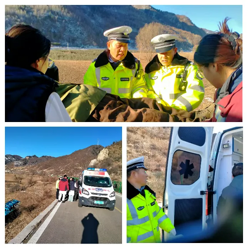 1月17日9時(shí)15分,寧武縣公安局交警大隊(duì)東寨中隊(duì)接到縣局110緊急指令,東黃線1KM+500處(窯子彎村附近)一輛農(nóng)用三輪車不慎墜入溝中,有人員受傷。接到指令后,中隊(duì)民輔警火速出動(dòng),趕赴事發(fā)地點(diǎn)實(shí)施救援處置。
