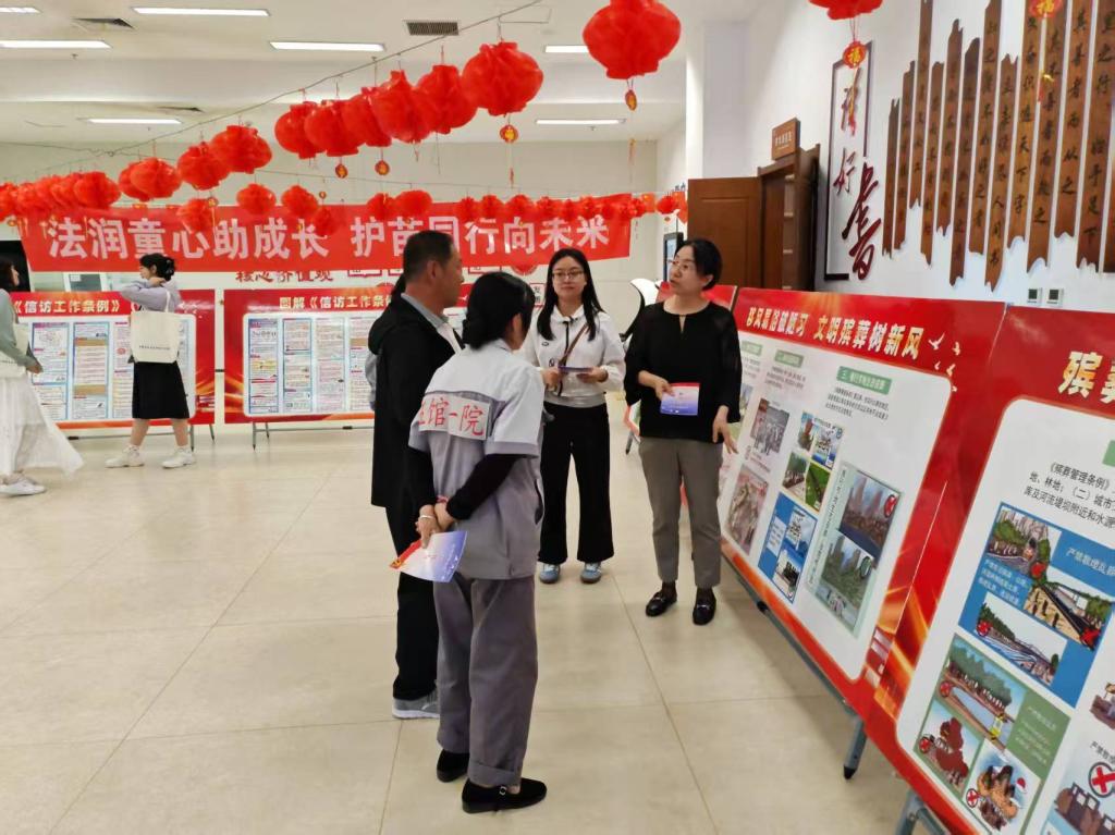 活動現(xiàn)場設置宣傳展區(qū)、法律咨詢臺,聚焦民法典、信訪、殯葬管理、未成年人保護等內容,通過展板展示、發(fā)放法律宣傳冊和法治宣傳品等形式,引導群眾開啟法治文化探索之旅,打造沉浸式法治宣教地標。相關工作人員以通俗易懂的語言講解法律知識,開展案例互動和法律咨詢,解答群眾關切問題30余個,讓法治理念潛移默化浸潤心田。