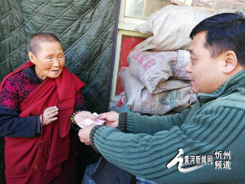 發(fā)起冬至關(guān)愛全山散住僧眾的宗臺法師介紹,出家之前幾年間他免費流通法寶,跑遍了五臺山各個角落,了解了散住僧眾的生活狀況,這些租小房或山洞茅棚的師父們有的是因為喜歡靜修,有的是因為沒有寺院,但年紀(jì)大了生活艱苦也不愿意離開五臺山這個文殊道場。五臺山散住的大部分出家?guī)煻家揽肯募敬蚯S維持一年的生活,但有些偏遠(yuǎn)的、或者行動不便的老、病僧人,打齋較少,到了冬季又沒有游客供養(yǎng),所以生活很艱苦,有的僧人點不起爐火,有的依靠撿干牛糞燒飯取暖,有的每天只吃一頓飯,佛前的貢品就是幾個土豆……
