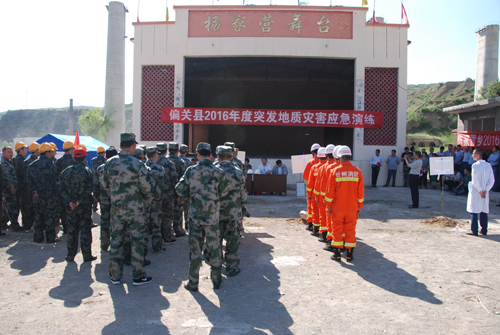 為了進一步做好地質(zhì)災害防治工作,偏關(guān)縣于6月8日下午在陳家營鄉(xiāng)楊家營村舉行2016年突發(fā)地質(zhì)災害應急演練。該縣地質(zhì)災害防治領導組各成員單位相關(guān)人員以及各鄉(xiāng)鎮(zhèn)鄉(xiāng)鎮(zhèn)長、分管負責人約100余人參加了演練。通過此次演練,進一步檢驗了各部門職責的分工落實,應急隊伍的協(xié)調(diào)能力、技術(shù)裝備的合理配置、受災群眾的防災自我意識等各方面情況,為迅速、高效、有序做好地質(zhì)災害防治工作奠定了良好的基礎。圖為演練現(xiàn)場。(劉源文 攝)