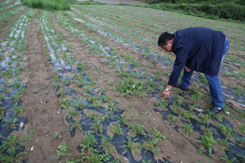 7月21日,靜樂縣堂爾上鄉(xiāng)呂呂溝村佛光合作社村民解晉才正在察看瑪咖長勢。近年來,靜樂縣積極引導(dǎo)農(nóng)民根據(jù)市場需求發(fā)展特色農(nóng)產(chǎn)品種植,先后引進了藜麥、瑪咖、黑枸杞等特色農(nóng)產(chǎn)品,目前全縣種植38000余畝,形成了種植、采收、加工、銷售為一體的產(chǎn)業(yè)鏈,帶動農(nóng)民增收致富。(閆曉梅 攝)