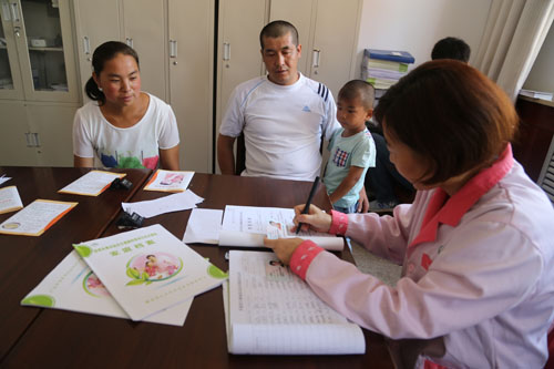 7月26日,來自靜樂縣杜家村鎮(zhèn)李家灣村的趙金國夫婦在該縣計(jì)生服務(wù)中心接受了免費(fèi)孕前優(yōu)生健康檢查。近年來,為降低出生缺陷發(fā)生風(fēng)險(xiǎn),提高出生人口素質(zhì),靜樂縣大力宣傳孕前優(yōu)生健康檢查知識(shí)、意義、檢查項(xiàng)目等內(nèi)容,積極為農(nóng)村計(jì)劃懷孕夫婦開展免費(fèi)孕前優(yōu)生健康檢查,受到群眾好評(píng)。圖為計(jì)生工作人員正在給趙金國夫婦作登記。(閆曉梅 攝)