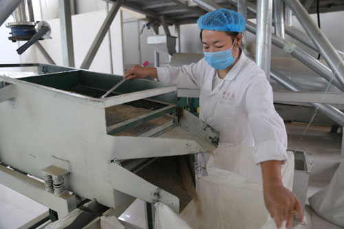 7月22日,靜樂縣華青藜麥產(chǎn)品開發(fā)有限公司的員工在篩選藜麥產(chǎn)品。這個(gè)綜合性農(nóng)業(yè)開發(fā)企業(yè),堅(jiān)持走“企業(yè)管理+種植基地”的運(yùn)作模式,積極推動(dòng)藜麥、小雜糧等規(guī)?;N植經(jīng)營,成為當(dāng)?shù)貛ьI(lǐng)農(nóng)民致富的龍頭企業(yè)。(閆曉梅 攝)