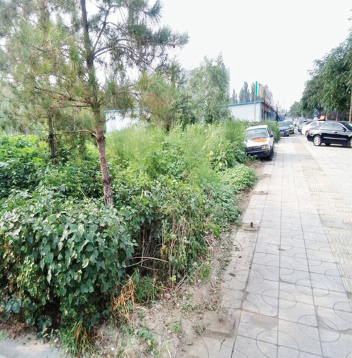 隨著我市城市建設工作的不斷推進,城區(qū)環(huán)境有了新的變化。新修的道路寬敞整潔,道路兩旁的花草苗木將城市點綴得亮麗多彩。然而,在新建北路一側(cè),卻難尋綠化蹤跡,瘋狂生長的野草“霸占”了近500米的地帶,與周圍的優(yōu)美環(huán)境格格不入。