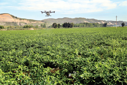 9月11日,在靜樂縣永倉種植專業(yè)合作社辣椒種植示范園,操作人員正在遙控?zé)o人機(jī)噴灑農(nóng)藥。據(jù)了解,無人機(jī)噴灑農(nóng)藥具有速度快、效率高等特點(diǎn),1架無人機(jī)平均每天噴灑面積可達(dá)1000畝。(閆曉梅 攝)