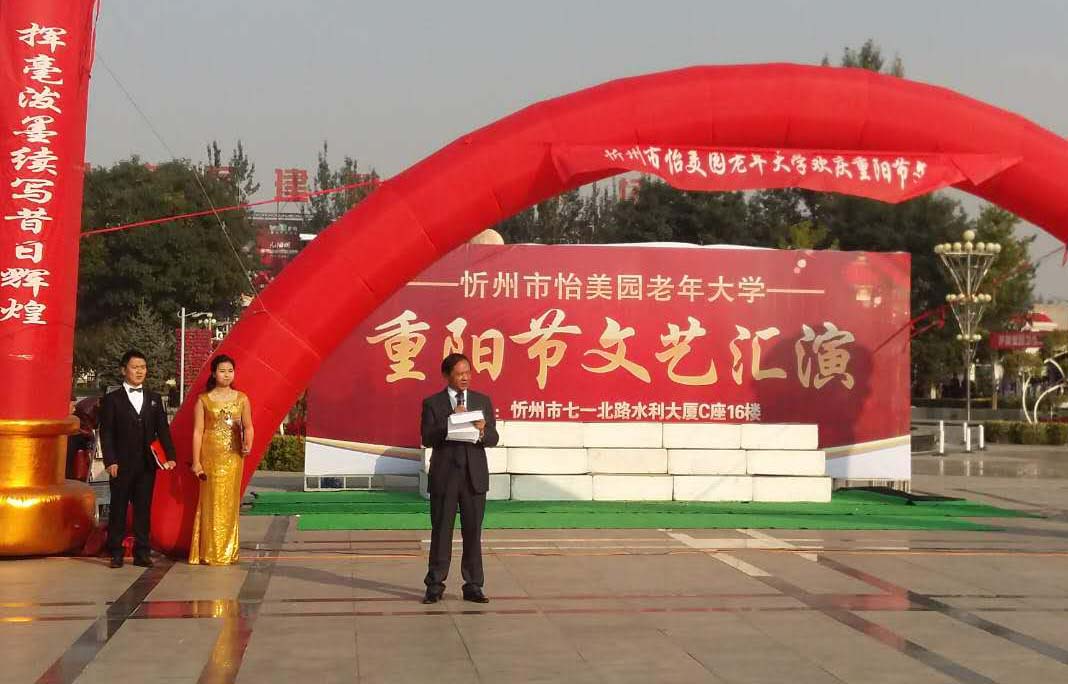 伴隨著怡美園老年大學(xué)全體學(xué)員共同表演的舞蹈《歡聚一堂》,忻州市怡美園老年大學(xué)校長(zhǎng)鄧九高代表該校全體師生對(duì)老年朋友們致以節(jié)日的慰問,在表達(dá)了提倡繼續(xù)發(fā)揚(yáng)尊老愛老的中華傳統(tǒng)美德,經(jīng)營(yíng)好自己的家庭,盡孝心、促和諧,為構(gòu)建美好和諧的社會(huì)氛圍貢獻(xiàn)力量的同時(shí),也對(duì)年輕人寄以希望,享受生命,感恩陽光。