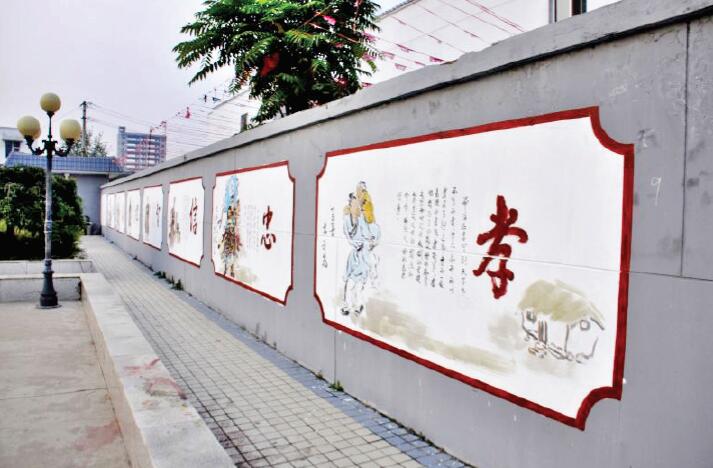 日前,我市城區(qū)創(chuàng)衛(wèi)工作如火如荼進(jìn)行中,城中村街面整治作為創(chuàng)衛(wèi)工作的薄弱環(huán)節(jié),對(duì)其改造尤為重要。10月12日,記者在我市城區(qū)的逯家莊看到,創(chuàng)衛(wèi)工作人員對(duì)粉刷后的街道墻壁進(jìn)行美化,一幅幅生動(dòng)的“忠孝廉恥圖”,既蘊(yùn)藏著文化內(nèi)涵,又起到了美觀效果,成為街頭一道靚麗的風(fēng)景線(xiàn)。(張志遠(yuǎn) 孫明 攝)