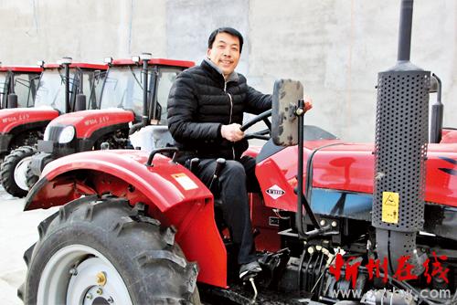 2月25日,原平市上封村村民孟寶生在該市農(nóng)機公司購買了一臺東方紅牌拖拉機,享受政府農(nóng)機補貼,高高興興開回家。原平市農(nóng)機公司發(fā)揮農(nóng)機供應主渠道作用,積極組織農(nóng)機貨源,大中小不同型號、平地山坡地耕播旋功能等農(nóng)機具品種齊全,滿足了農(nóng)民春耕備耕生產(chǎn)需求。(吉建平 攝)