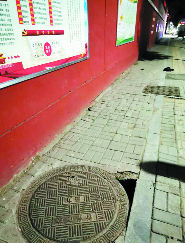 又 訊 6月14日,有熱心市民向本報(bào)反映,位于忻州八中門口的一下水井蓋旁路面損壞,形成了一個(gè)窟窿,存在行人被絆倒甚至是路面塌陷的安全隱患。希望有關(guān)部門盡快修復(fù),還附近學(xué)生和市民一個(gè)安全的出行環(huán)境。(張志遠(yuǎn))