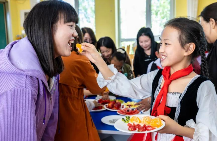 2023年5月12日,呼和浩特市玉泉區(qū)五塔寺東街小學(xué)學(xué)生請媽媽品嘗自己剛剛拼好的水果拼盤。通訊員 丁根厚 攝 背景:習(xí)近平總書記在全國教育大會上指出:“辦好教育事業(yè),家庭、學(xué)校、政府、社會都有責(zé)任?!秉h的二十大報告中明確要求“健全學(xué)校家庭社會育人機制”。2023年1月,教育部等十三部門聯(lián)合印發(fā)《關(guān)于健全學(xué)校家庭社會協(xié)同育人機制的意見》,這是貫徹落實黨的二十大精神,深化教育綜合改革,構(gòu)建良好育人生態(tài),落實立德樹人根本任務(wù),培養(yǎng)擔(dān)當(dāng)民族復(fù)興大任時代新人的重要舉措。 解讀:家校社協(xié)同育人的關(guān)鍵在于“協(xié)同”,三者共同服務(wù)于“育人”這個核心。學(xué)校、家庭和社會的配合,共同影響著孩子的成長與發(fā)展。要讓教育效能最大化,就必須將學(xué)校社會家庭的三方優(yōu)勢融合為一個有機的整體。家校社協(xié)同育人不僅關(guān)系到國家和民族的利益,也與家庭和社會的穩(wěn)定密不可分,更與社會主義現(xiàn)代化建設(shè)息息相關(guān),是順應(yīng)素質(zhì)教育理念,遵循青少年身心發(fā)展規(guī)律的體現(xiàn),是回應(yīng)新時代教育改革發(fā)展要求,落實立德樹人根本任務(wù)的重要舉措。家庭教育應(yīng)當(dāng)主動協(xié)同學(xué)校發(fā)揮其教書育人主陣地的作用,加強社會教育資源建設(shè),推動學(xué)校家庭社會各司其職。 (責(zé)任編輯:蔡文斌) |
