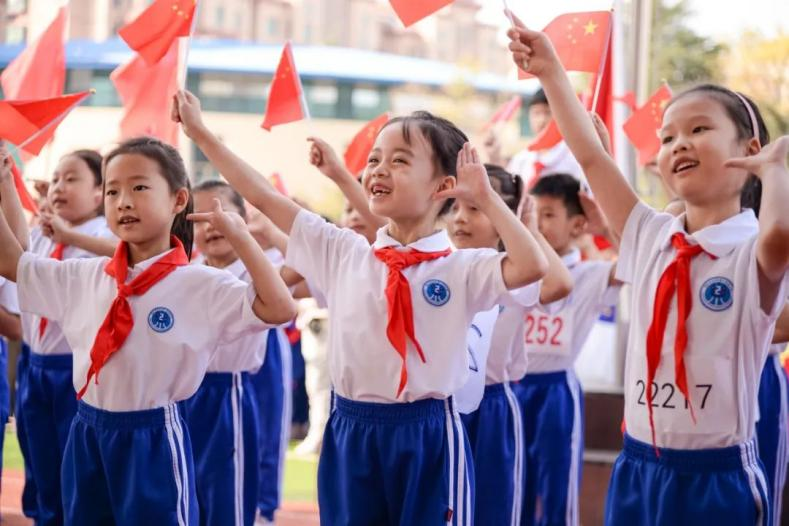 2023年10月12日,在山東省青島市城陽區(qū)第二實驗小學(xué),學(xué)生們在秋季運動會開幕式上進行才藝展演。通訊員 張鷹 攝 背景:黨的二十大報告指出,“加快建設(shè)教育強國、科技強國、人才強國,堅持為黨育人、為國育才,全面提高人才自主培養(yǎng)質(zhì)量,著力造就拔尖創(chuàng)新人才,聚天下英才而用之”。中共中央政治局2023年5月29日下午就建設(shè)教育強國進行第五次集體學(xué)習(xí)。中共中央總書記習(xí)近平在主持學(xué)習(xí)時強調(diào),教育興則國家興,教育強則國家強。建設(shè)教育強國,是全面建成社會主義現(xiàn)代化強國的戰(zhàn)略先導(dǎo),是實現(xiàn)高水平科技自立自強的重要支撐,是促進全體人民共同富裕的有效途徑,是以中國式現(xiàn)代化全面推進中華民族偉大復(fù)興的基礎(chǔ)工程。 解讀:強國必先強教,教育強則國強。建設(shè)教育強國是黨中央、國務(wù)院的重大戰(zhàn)略部署,是國家意志和國家行動。建設(shè)教育強國是一項系統(tǒng)工程,要堅持立足長遠、標(biāo)準(zhǔn)引領(lǐng)、分步實施、整體推進的工作思路,系統(tǒng)設(shè)計、系統(tǒng)實施、系統(tǒng)評價和系統(tǒng)提升。要進一步科學(xué)認識和把握深層次教育改革的綜合性、復(fù)雜性、深刻性和系統(tǒng)性,充分發(fā)揮社會主義制度優(yōu)勢,鞏固規(guī)模優(yōu)勢,提升質(zhì)量優(yōu)勢,努力在增強教育綜合實力、國際競爭力和影響力上下功夫,持續(xù)縮小教育的城鄉(xiāng)、區(qū)域、校際、群體差距,在實現(xiàn)城鄉(xiāng)教育優(yōu)質(zhì)均衡發(fā)展、加快建設(shè)世界重要人才中心和創(chuàng)新高地方面取得實質(zhì)性突破。 基點在基礎(chǔ)教育 擦亮人才成長發(fā)展底色, 筑牢教育強國堅實底盤