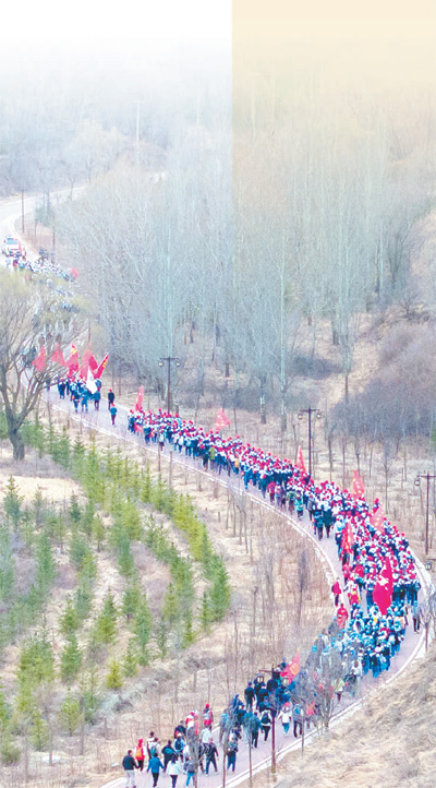 寧夏回族自治區(qū)固原市第二中學和弘文中學師生徒步前往彭陽縣任山河烈士陵園,緬懷革命先烈。陳佳文攝