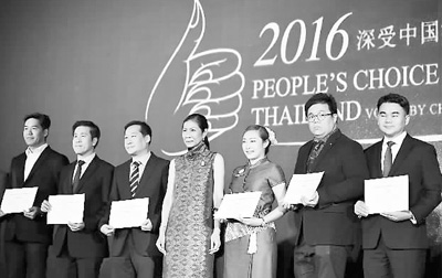 泰國(guó)國(guó)家旅游局此前公布2016年度“最受中國(guó)游客歡迎獎(jiǎng)”評(píng)選結(jié)果,希望評(píng)選能促進(jìn)泰國(guó)旅游業(yè)質(zhì)量不斷提高,吸引更多中國(guó)游客。圖為頒獎(jiǎng)典禮上,泰官員為獲獎(jiǎng)機(jī)構(gòu)代表頒發(fā)獲獎(jiǎng)證書(shū)。新華社記者 李芒茫攝