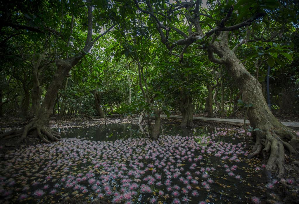 七里村玉蕊林有400多畝,共1萬余株。中國林業(yè)科學(xué)研究院熱帶林業(yè)研究所研究員廖寶文說,七里村玉蕊林面積之大,全國罕見,且多數(shù)樹齡在800年以上,是海南島內(nèi)不可復(fù)制的淡水濕地森林“活標(biāo)本”。