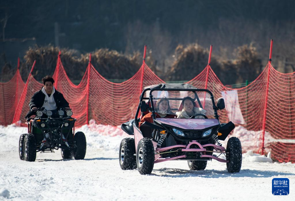 1月19日,在邯鄲市復(fù)興區(qū)東高河村滑雪場(chǎng),游客在體驗(yàn)雪地越野車(chē)項(xiàng)目。