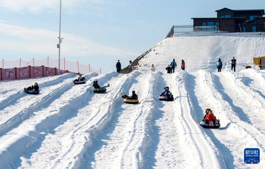 1月19日,在邯鄲市復(fù)興區(qū)東高河村滑雪場(chǎng),游客在體驗(yàn)滑雪圈項(xiàng)目。