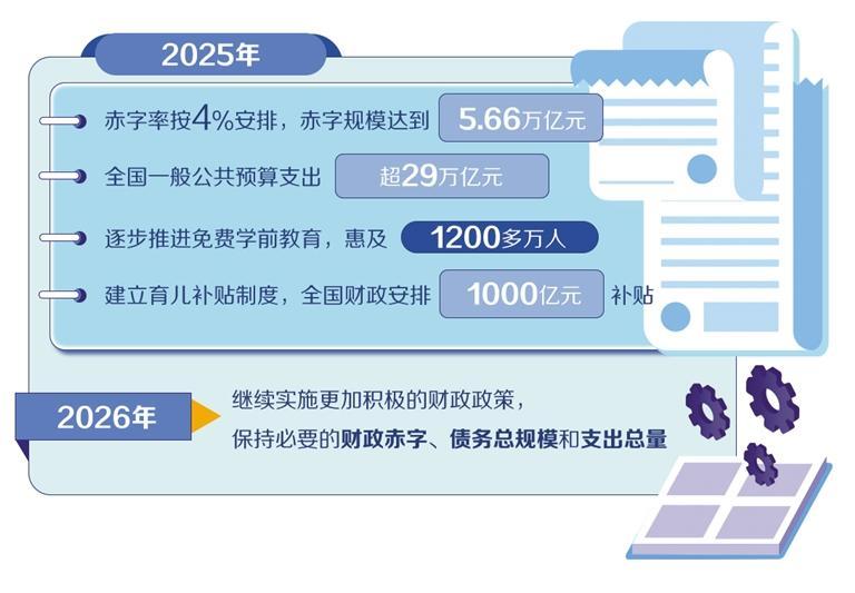 中央經(jīng)濟(jì)工作會(huì)議部署,2026年我國繼續(xù)實(shí)施更加積極的財(cái)政政策。擴(kuò)大財(cái)政支出盤子、優(yōu)化政府債券工具組合、增強(qiáng)地方自主可用財(cái)力、持續(xù)優(yōu)化支出結(jié)構(gòu)、加強(qiáng)財(cái)政金融協(xié)同……記者從日前召開的全國財(cái)政工作會(huì)議獲悉,2026年更加積極的財(cái)政政策將繼續(xù)打出有力有效的“組合拳”,強(qiáng)化對(duì)經(jīng)濟(jì)發(fā)展的支撐和保障。
