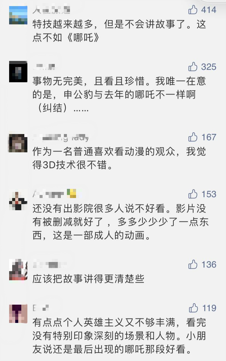 中新經(jīng)緯記者注意到,《姜子牙》上映后,網(wǎng)絡(luò)出現(xiàn)了不同聲音,有網(wǎng)友表示“特技越來越多,但是不會講故事了”。也有網(wǎng)友力挺:“事物無完美,且看且珍惜”。