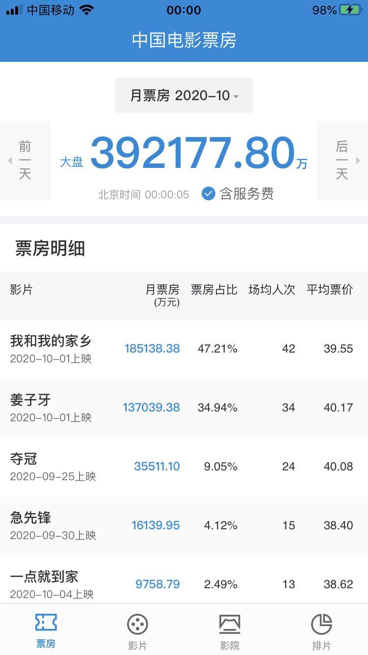 2020年國慶檔(10月1日-10月8日)落下帷幕,據(jù)國家電影專項資金辦公室“中國電影票房APP”數(shù)據(jù)顯示,截至10月8日24時,2020年國慶檔票房達(dá)39.2億元,取得中國影史國慶檔票房第二的成績。