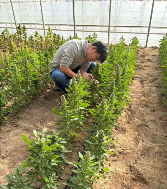 除了常規(guī)水肥管理與病蟲害防控,溫室更重要的日常工作是科研?!坝N不是看一眼就能下結(jié)論,必須把每一株、每一代的變化都用數(shù)據(jù)說清楚。在藜麥生長的關(guān)鍵時期,記錄株型、穗型、抗性表現(xiàn)等數(shù)據(jù)非常重要,還要采集基因樣本用于測定與分析,為后續(xù)選擇提供依據(jù)?!闭τ谌斯とバ垭s交工作的技術(shù)總監(jiān)賀培洋說。