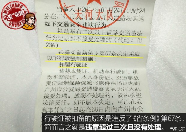 “違”張哥這個(gè)系列的選題原本都是我的同事張欣在更新,而我(廣州分站編輯陳海傭)平時(shí)很少寫用車類文章,但每次只要寫就說明我又?jǐn)偵鲜铝?。這次比較尷尬,在春節(jié)放假前夕,因?yàn)檫`章過多被交警扣留行駛證。表面是把違章處理完就能拿回行駛證,可沒想到整個(gè)過程竟是如此一波三折,很多細(xì)節(jié)需要注意。據(jù)統(tǒng)計(jì),在今年春節(jié)期間,就有超過220萬多條違章產(chǎn)生,不知道大家有沒有中招。如果有并且違章次數(shù)超過三次,那就要特別注意了,也希望我這次親身經(jīng)歷的分享能夠給大家一些啟發(fā)。