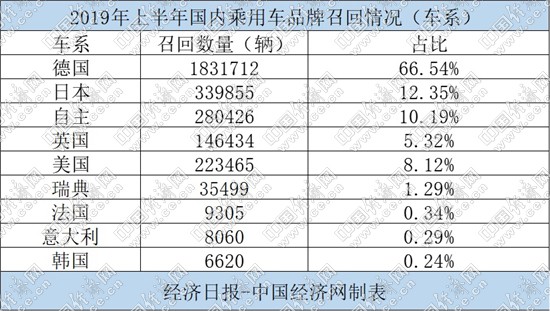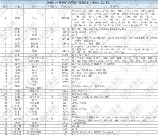 分車系來看,上半年,德系品牌成為召回“主力”,1-6月,德系品牌共召回汽車1831712輛,占召回總量的66.54%,其中寶馬、奔馳分別以830833輛和720479輛的召回數(shù)量,“遙遙領(lǐng)先”其他品牌;而高檔車、超級跑車品牌保時捷更是召回汽車114337輛,數(shù)量甚至遠(yuǎn)超其2018年80108輛的銷量總和。