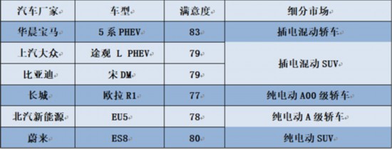 中國質(zhì)量協(xié)會(huì)表示,市場(chǎng)競(jìng)爭和質(zhì)量持續(xù)提高促使我國新能源汽車用戶滿意度指數(shù)大幅提升,尤其是高續(xù)航里程及中高端產(chǎn)品受到用戶青睞。測(cè)評(píng)數(shù)據(jù)顯示,續(xù)航里程越高的產(chǎn)品,滿意度也更高。主流合資品牌向插電混動(dòng)汽車市場(chǎng)投放成熟的中高端產(chǎn)品,這些產(chǎn)品的滿意度水平相對(duì)更高。