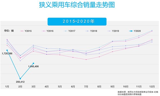 1季度,受春節(jié)假期大幅提前及疫情疊加沖擊,國(guó)內(nèi)狹義乘用車?yán)塾?jì)銷量為3014399輛,同比跌幅40.8%;但3月車市已現(xiàn)明顯復(fù)蘇勢(shì)頭,共售出狹義乘用車1045406輛,環(huán)比猛增317.5%,同比下滑40.4%,恢復(fù)至接近同期6成水平。
