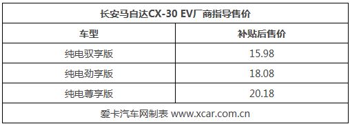 馬自達(dá)CX-30 EV上市 補(bǔ)貼后15.98萬元起