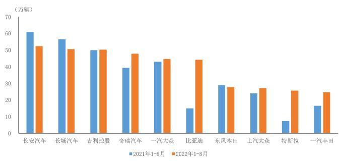 中新網(wǎng)9月26日電 據(jù)中國汽車工業(yè)協(xié)會統(tǒng)計分析,2022年1-8月,銷量排名前十位的SUV生產(chǎn)企業(yè)共銷售395.2萬輛,占SUV銷售總量的57%。