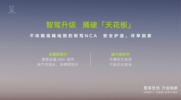 伴隨著阿維塔11鴻蒙版智享升級款的上市,阿維塔“去高精地圖化”智駕時代正式開啟,打破“按圖索驥”束縛,完美彌補當(dāng)下高精地圖智駕方案的不足并解鎖更多高頻智駕場景,城區(qū)NCA智駕功能即將一次性解鎖超過300個城市,帶來“全國都能開、 全國都好開”的出行體驗。