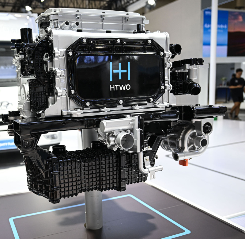 圖為在現(xiàn)代汽車集團(tuán)展臺(tái)拍攝的氫燃料電池系統(tǒng)。新華社記者 蒲曉旭 攝