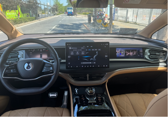 進(jìn)入車內(nèi),騰勢(shì)D9以“雙色豪華”為主題,提供云峰棕、曠達(dá)米等多元配色方案,搭配山海百納真木飾板與NAPPA真皮座椅,營造出媲美百萬級(jí)豪車的座艙氛圍。中控臺(tái)采用15.6英寸懸浮式大屏與10.25英寸全液晶儀表的組合,搭載騰勢(shì)Link超智能交互系統(tǒng),支持全場(chǎng)景語音控制、多屏共享及10種情景模式切換,操作流暢度與響應(yīng)速度均達(dá)到行業(yè)頂尖水平。
