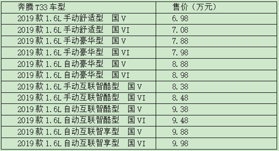 動(dòng)力方面,奔騰T33搭載1.6升自然吸氣發(fā)動(dòng)機(jī)最大功率為114馬力/5500rpm,峰值扭矩為155牛米/3600rpm,匹配愛(ài)信6AT變速箱。
