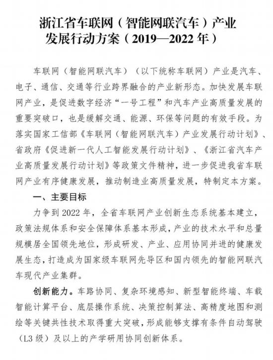 推動(dòng)智能網(wǎng)聯(lián)發(fā)展的,除了技術(shù),還有政策?!凹涌彀l(fā)展智能網(wǎng)聯(lián)產(chǎn)業(yè),是促進(jìn)數(shù)字經(jīng)濟(jì)‘一號(hào)工程’和汽車產(chǎn)業(yè)高質(zhì)量發(fā)展的重要突破口,也是緩解交通、能源、環(huán)保等問(wèn)題的有效手段?!苯?,浙江省經(jīng)濟(jì)和信息化廳、科技廳、交通運(yùn)輸廳聯(lián)合印發(fā)《浙江省車聯(lián)網(wǎng)(智能網(wǎng)聯(lián)汽車)產(chǎn)業(yè)發(fā)展行動(dòng)方案(2019-2022 年)》(以下簡(jiǎn)稱《方案》)中所指出的,正是發(fā)展智能網(wǎng)聯(lián)的意義所在。