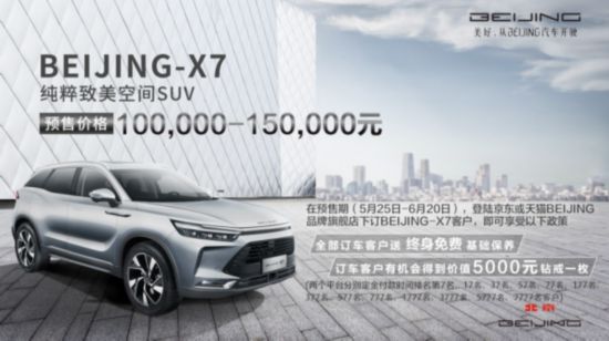 近日,BEIJING汽車品牌在廣州增城工廠中舉行了一場圍繞BEIJING-X7線上發(fā)布會,會上公布了BEIJING-X7的預(yù)售價格,區(qū)間為10.00-15.00萬元。據(jù)預(yù)測,6月20日預(yù)售期結(jié)束后,BEIJING-X7會正式上市。