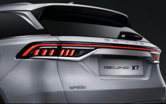 值得一提的是,BEIJING-X7在做到比例合適的同時也沒有放棄對細節(jié)的雕琢。前臉部分分區(qū)明顯,在梯形中網(wǎng)的周圍也有進氣口和霧燈的點綴,只是中網(wǎng)下部的結(jié)構(gòu)稍顯復(fù)雜,不過整體線條還是比較和諧。車尾部分的設(shè)計與前臉也相互呼應(yīng),大量平直線條塑造出了尾門的層次感,而采用平行結(jié)構(gòu)的尾燈光源也為車尾增加了更多細節(jié),看上去不乏味。