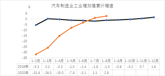 據中國汽車工業(yè)協(xié)會編輯的國家統(tǒng)計局公布數據顯示,8月,汽車制造業(yè)工業(yè)增加值同比增長14.8%,高于同期全國規(guī)模以上工業(yè)企業(yè)增加值9.2個百分點,繼續(xù)成為拉動工業(yè)增長的主要動力。1-8月,汽車制造業(yè)工業(yè)增加值同比增長2.8%,與1-7月相比,增速提升1.7個百分點;高于同期全國規(guī)模以上工業(yè)企業(yè)增加值2.4個百分點。