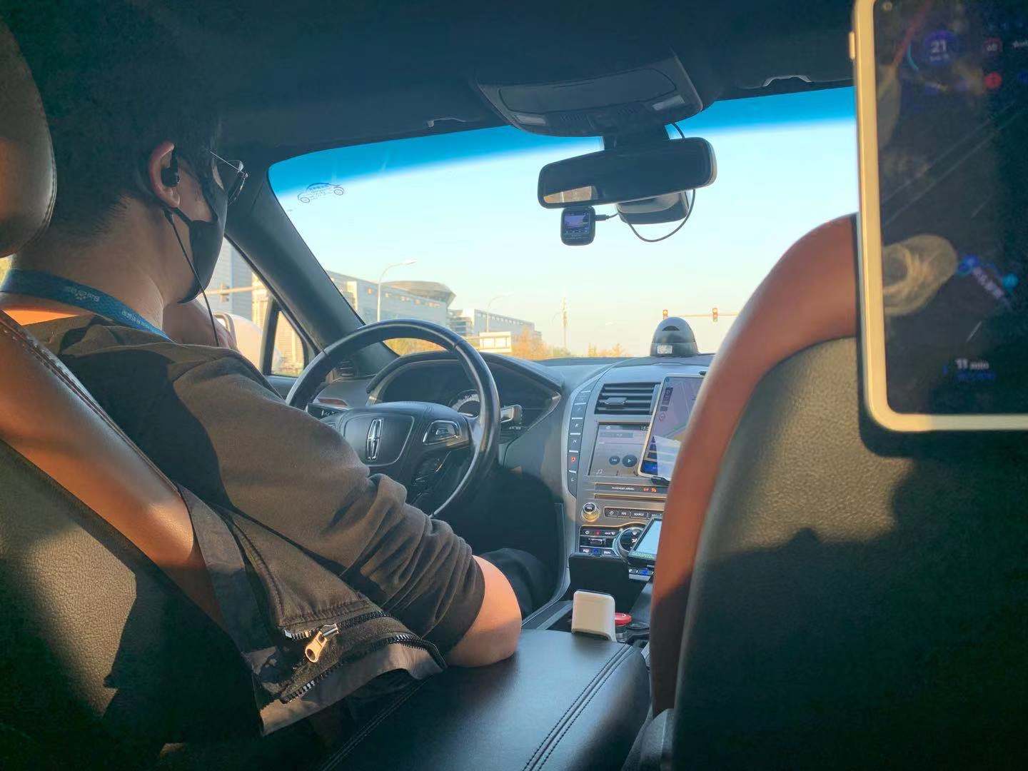 試運營中的百度Apollo自動駕駛車內(nèi)場景。人民網(wǎng)記者胡挹工攝
