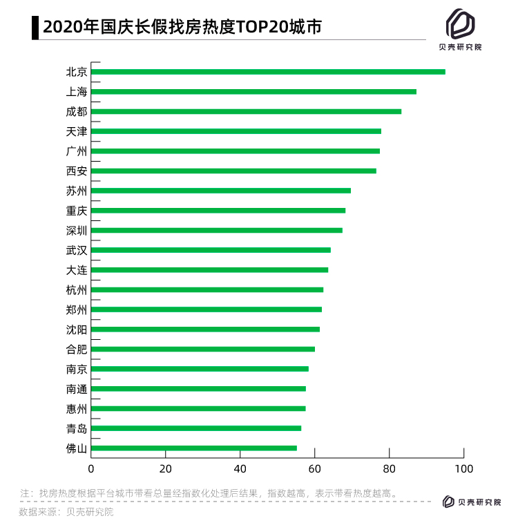 貝殼研究院對(duì)十一假期(10月1日-7日)平臺(tái)帶看數(shù)據(jù)統(tǒng)計(jì)顯示,北京“總帶看量”突破了5萬(wàn)次,同比去年2.96萬(wàn)次增幅明顯,位居城市排行榜第一名;上海與成都以4.2萬(wàn)次和3.7萬(wàn)次分列二三名。